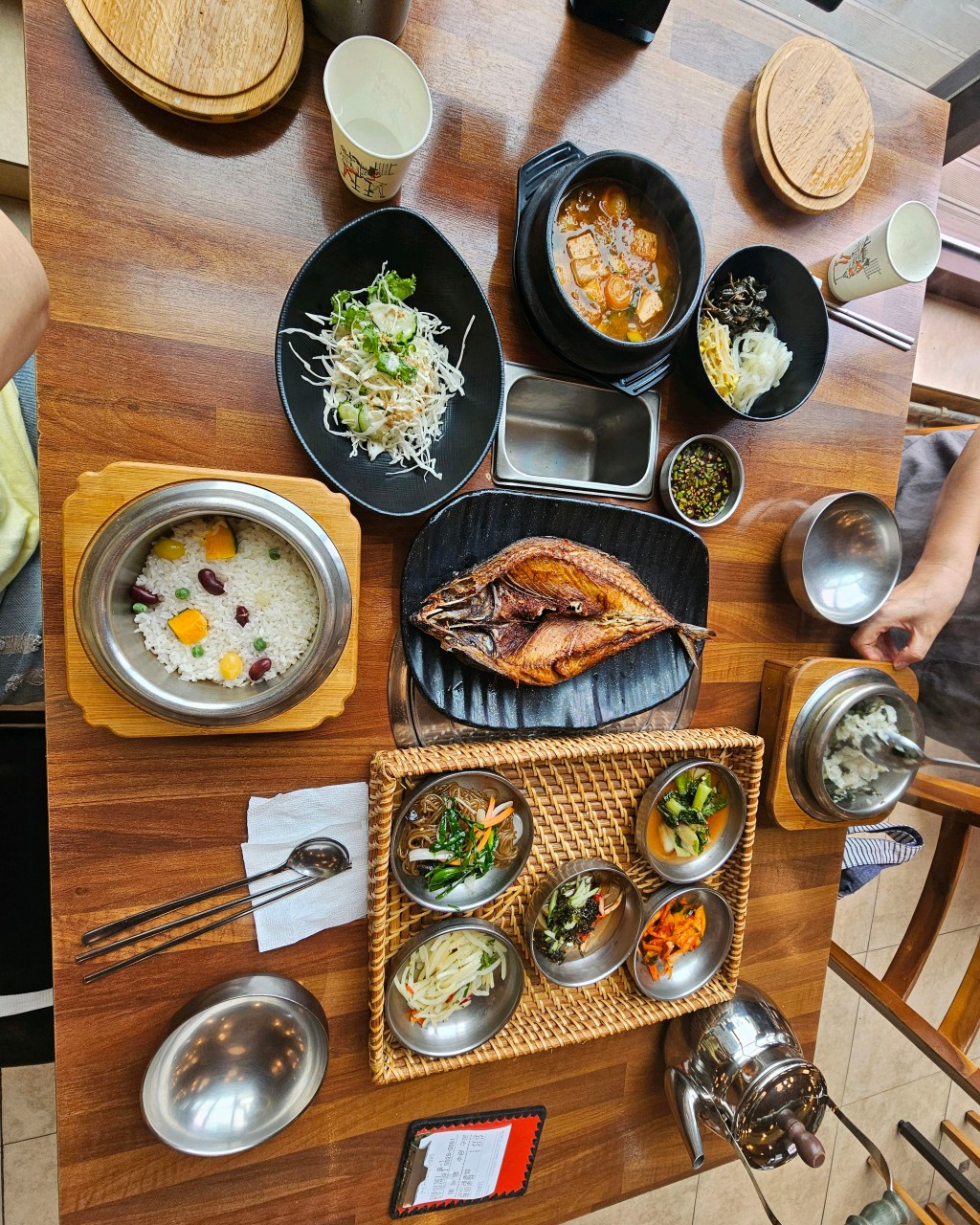 대왕암공원과 일산해수욕장 사이에 위치한 건강한 한식당입니다. 곤드레솥밥과 보리밥 정식이 대표 메뉴이며, 유황오리훈제·고등어구이·된장찌개 등 다양한 반찬이 함께 나옵니다. 식사 후 공원 산책을 곁들이면 여행의 여유를 느낄 수 있습니다.